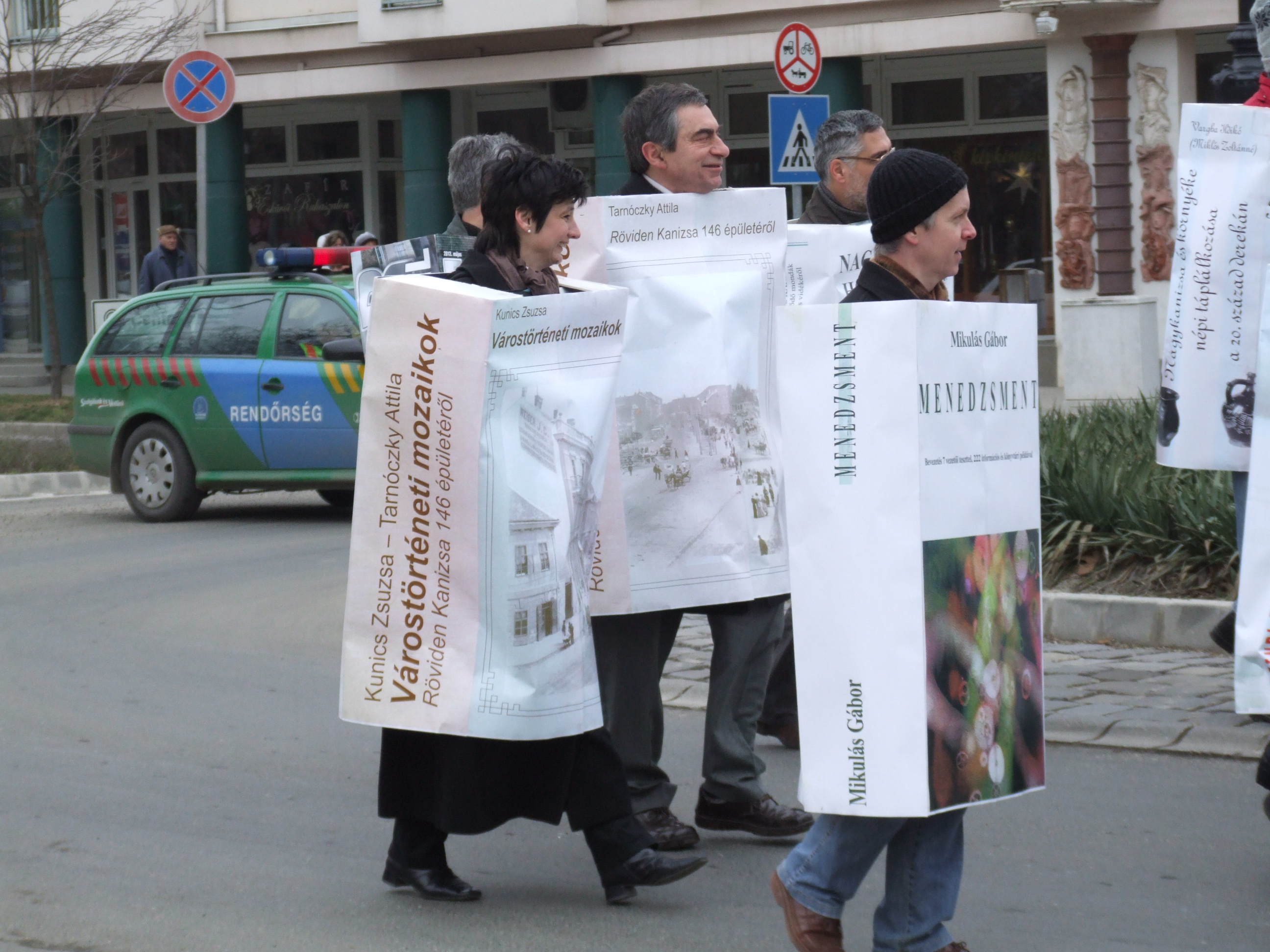 Nyilvános 1092 | 1417 | 2013. február 9. A farsangi fánkfesztiválra készülve felhívásban kértük olvasóinkat, hogy öltsék magukra kedves könyvüket. Egy „könyvespolcnyi” jelentkező vette magára kedves olvasmányát, az ő vonulásukról készültek ezek a képek. A környezetükben néhol láthatók a Nagykanizsai Gólyalábasok, akik szintén a könyvtárhoz kötődnek. A „felvonuló kötetek” a könyvtár épületében még megtekinthetők. | |