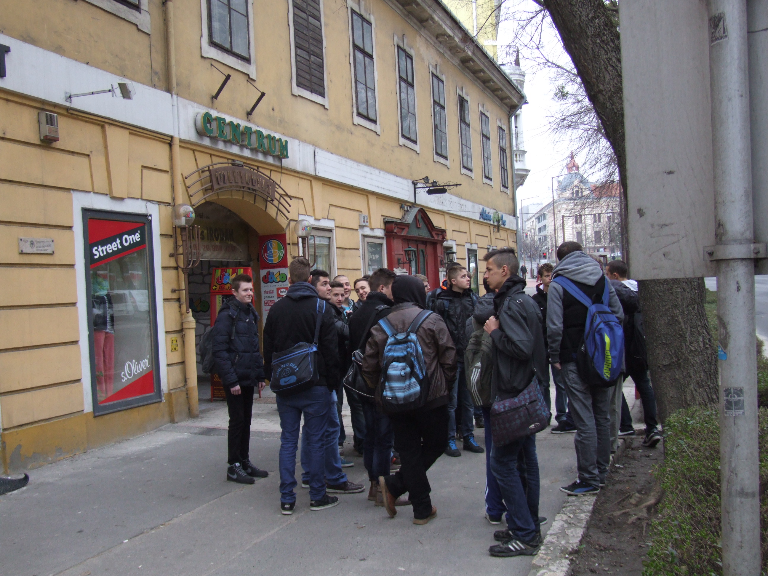 2014.03.03. Cserháti iskolások (10.b) a Városházánál 03.JPG