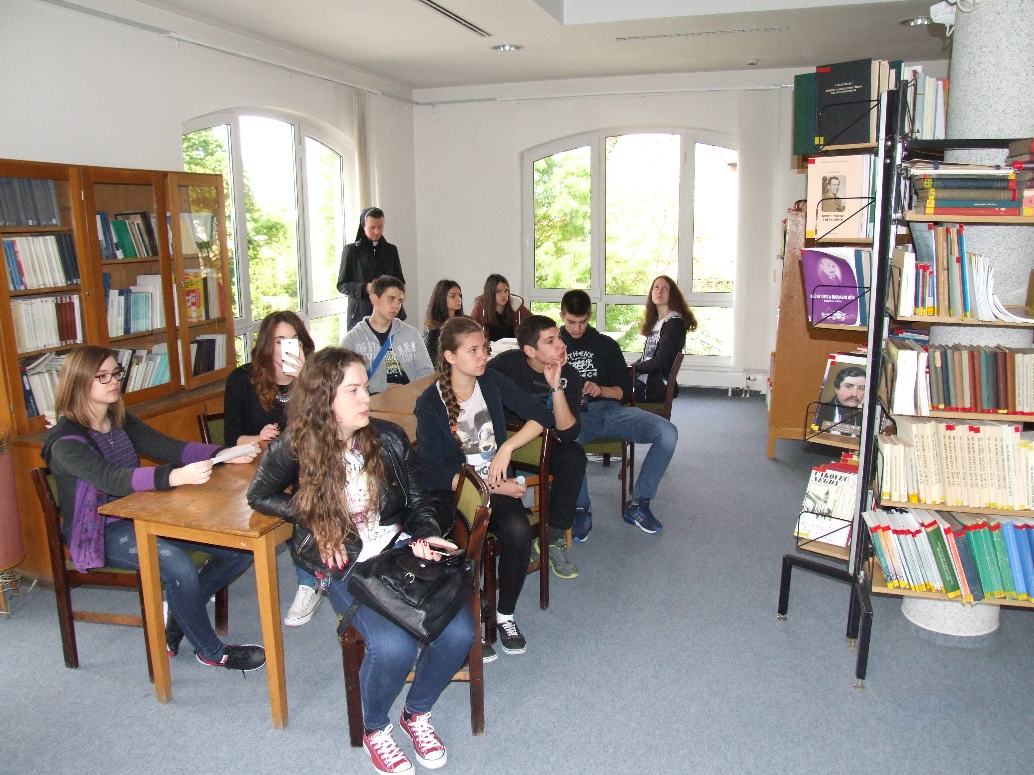2016.04.18. Horvát látogatók és horvátul tanuló piaristák a könyvtárban DSCF5127.JPG
