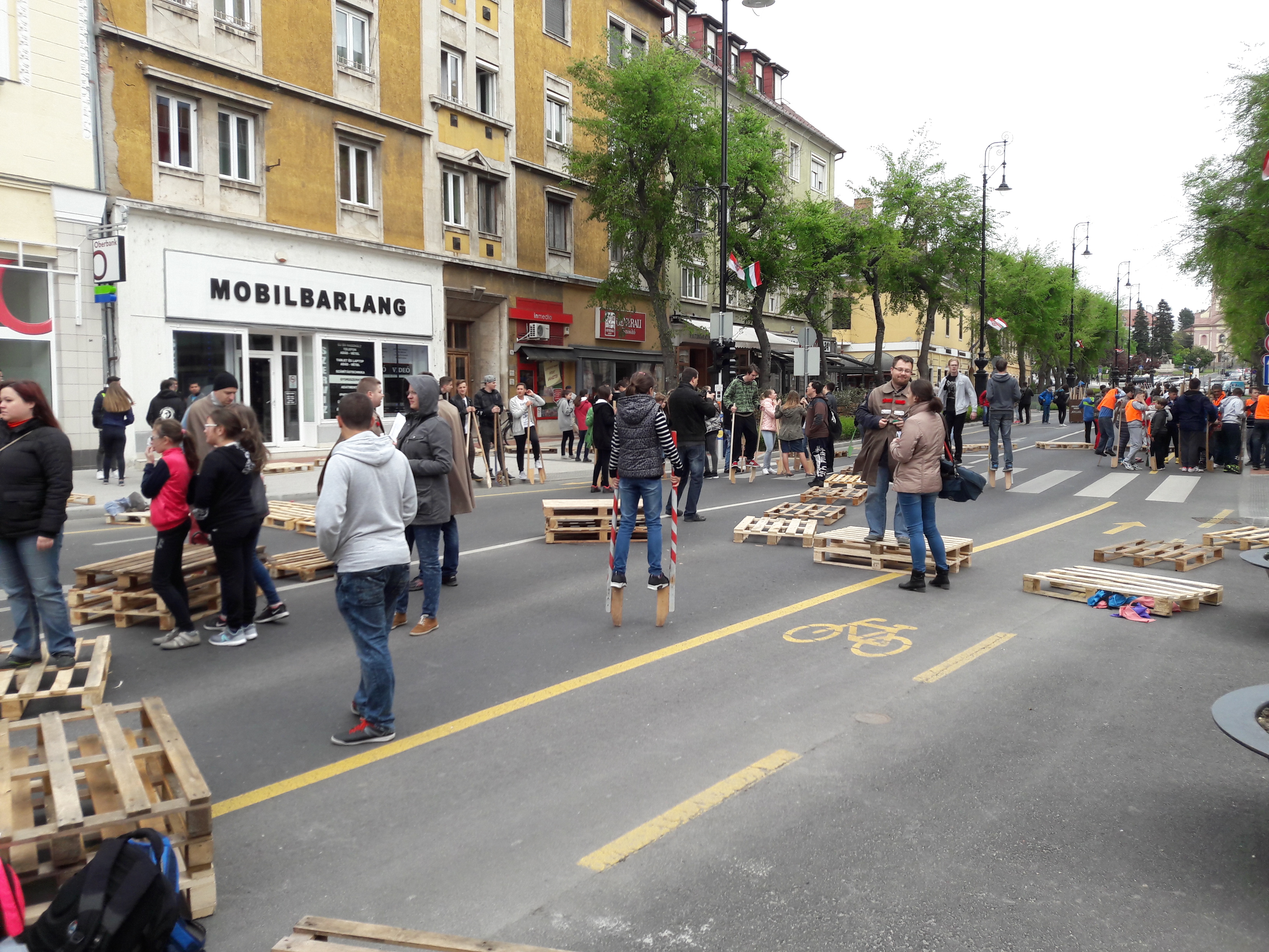 2017.04.27. Tömeges gólyalábra állás a Fő út - Ady u. kereszteződésében