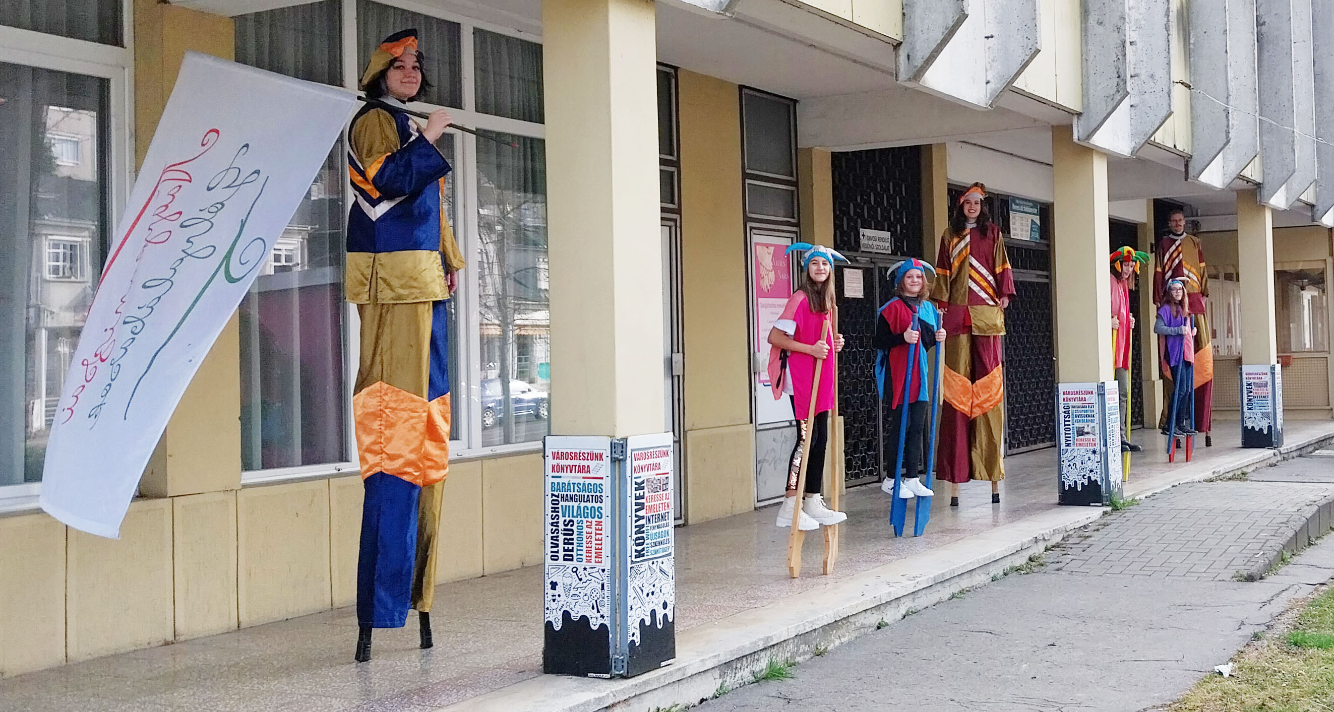 2024.02.10. Gólyalábasok a Hevesi úti fiókkönyvtár előtt