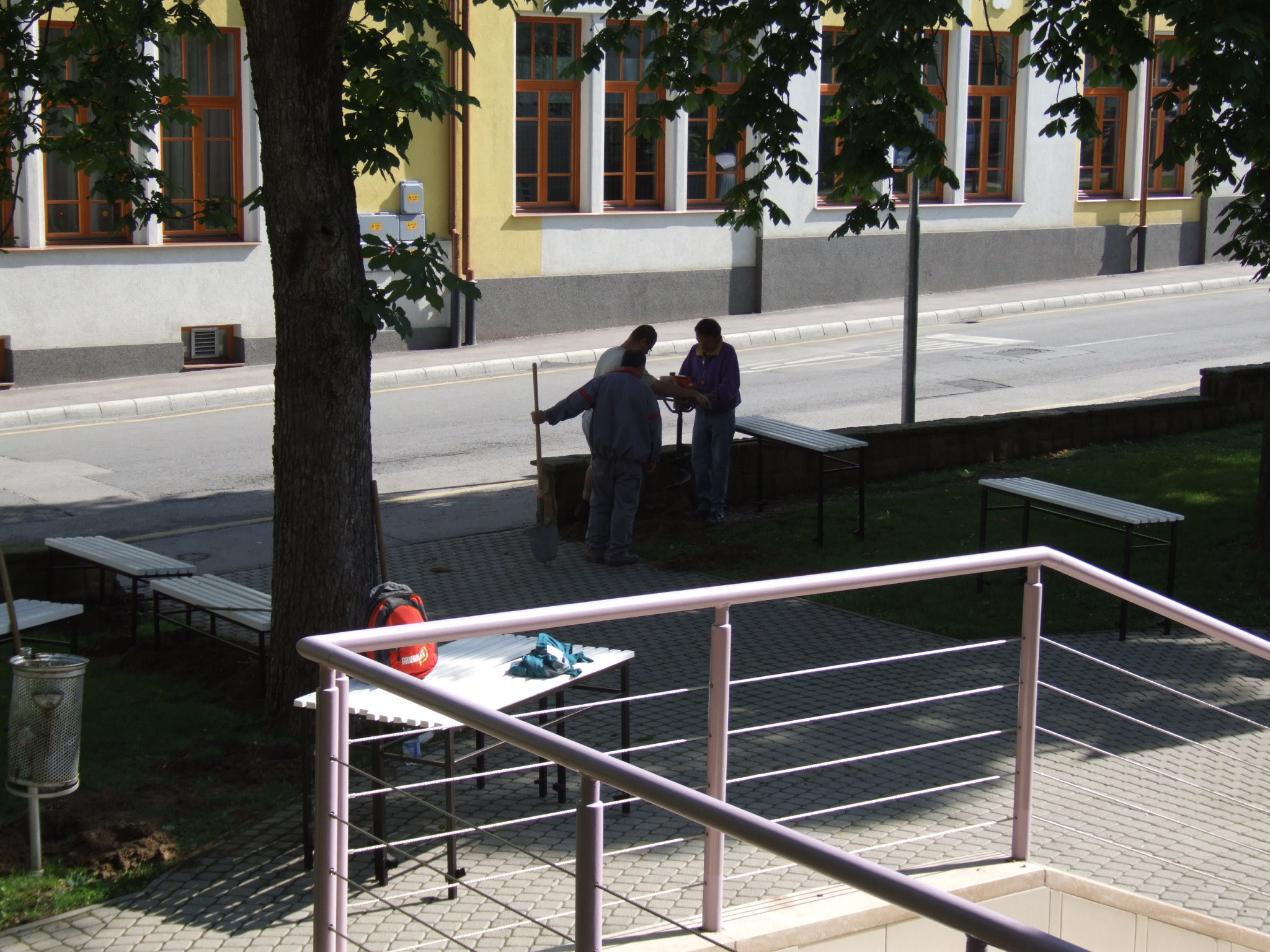 2009.06.08. Szerelik az első, fehér padokat