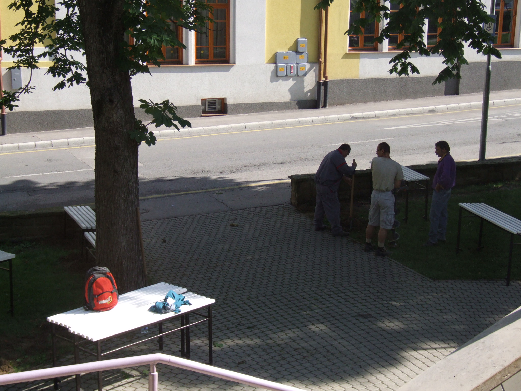 2009.06.08. Szerelik az első, fehér padokat