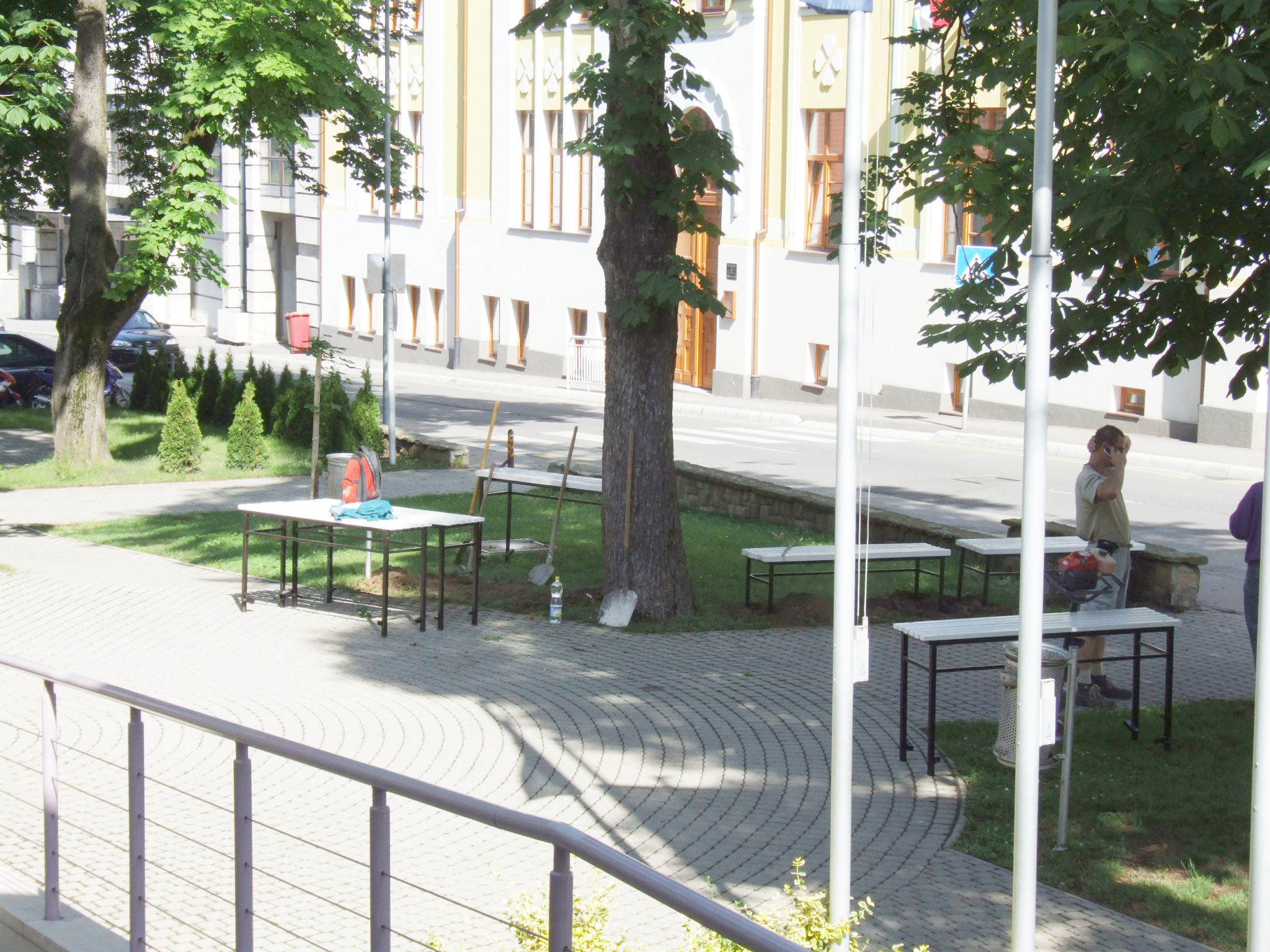 2009.06.08. Szerelik az első, fehér padokat